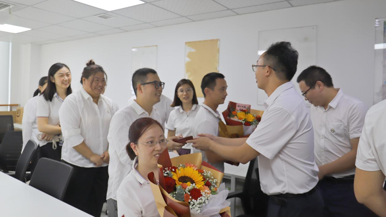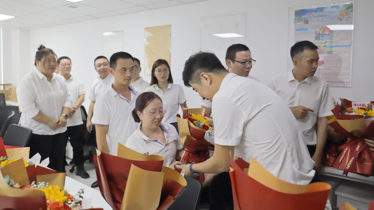 9月27日上午,天晟源環(huán)保主要領(lǐng)導李大有、張恒、姚夢代表公司向司齡滿九周年員工贈送與鮮花,向新滿五周年員工贈送紀念銀幣,一方面感謝他們的辛勤付出與忠誠堅守,另一方面勉勵他們再接再厲,在今后的工作中取得更好的成績。